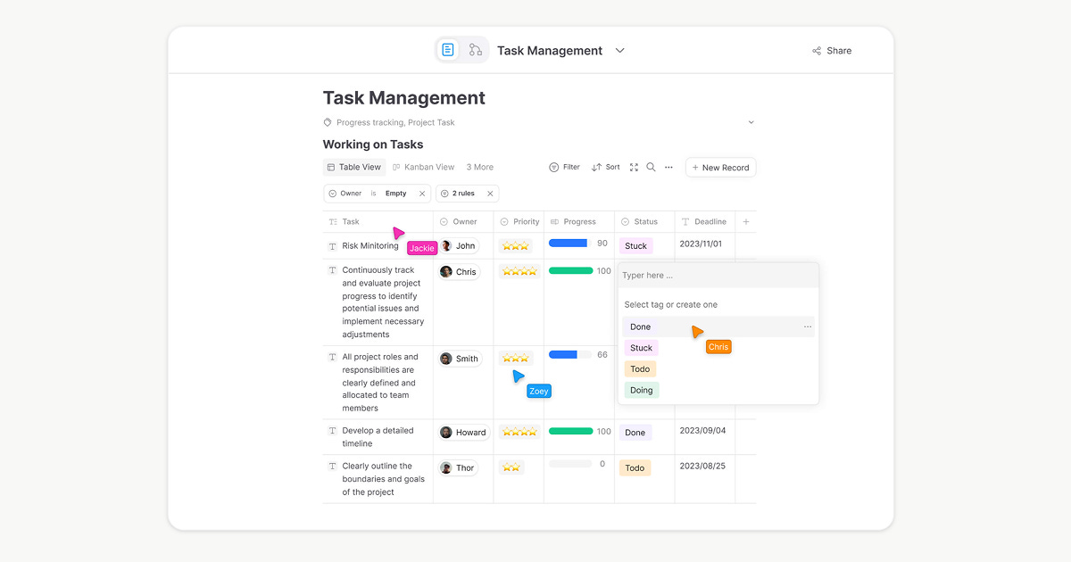 The platform's query capabilities allow you to create dynamic views of your information that automatically update as you add new content.