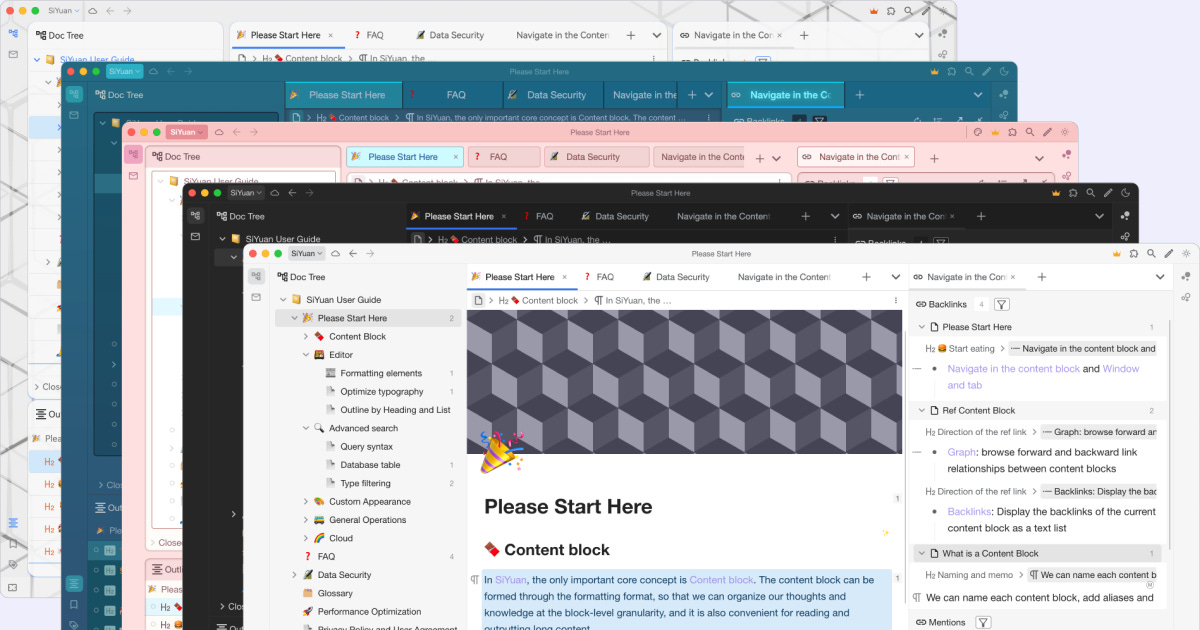 SiYuan is a sophisticated personal knowledge management system that combines block-based editing with powerful database functionality. Designed for serious knowledge workers, it provides extensive capabilities for organizing, linking, and querying information in complex ways.