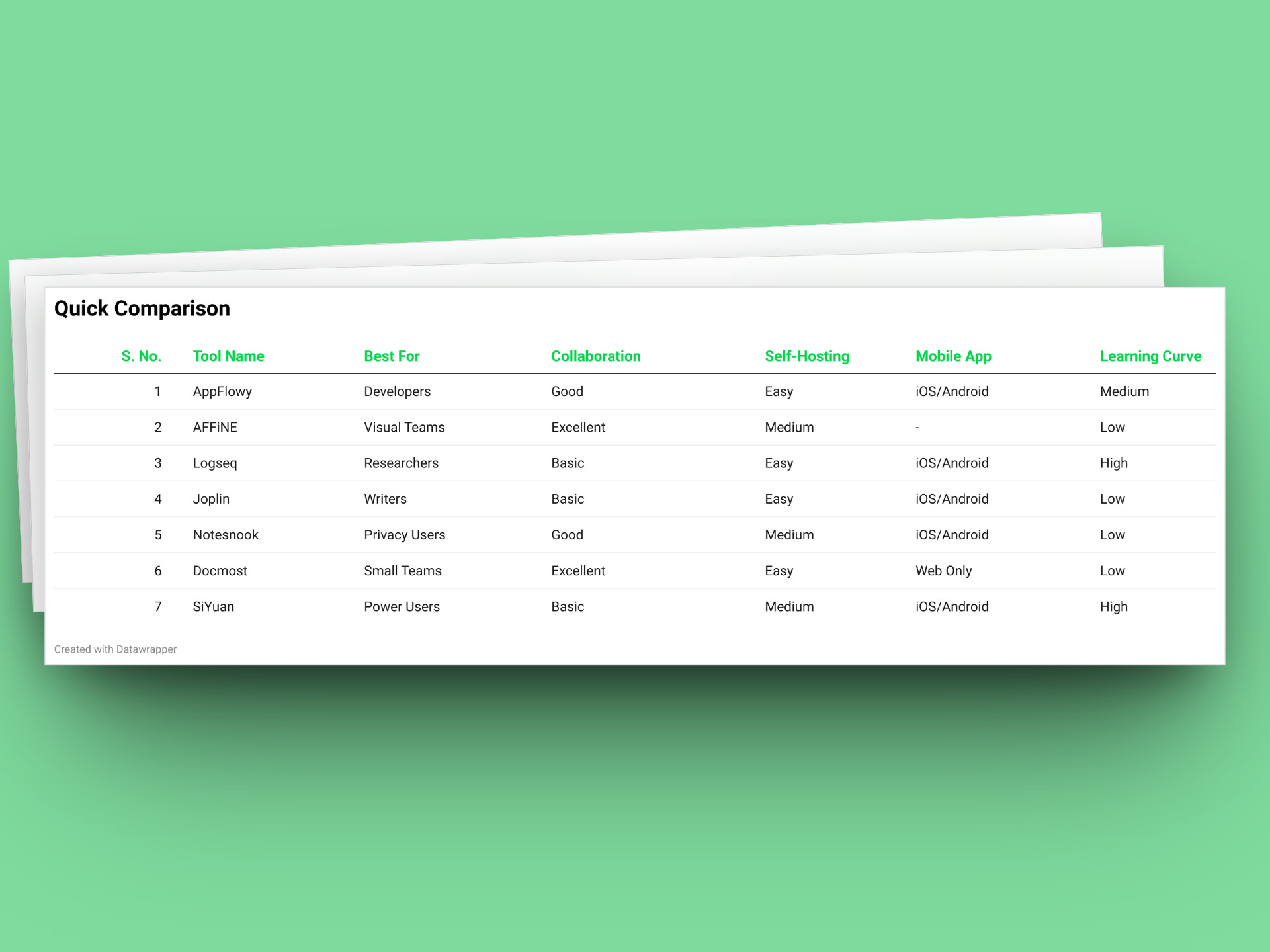 Data control and privacy: Notesnook encrypts your notes, and AppFlowy supports full self-hosting.